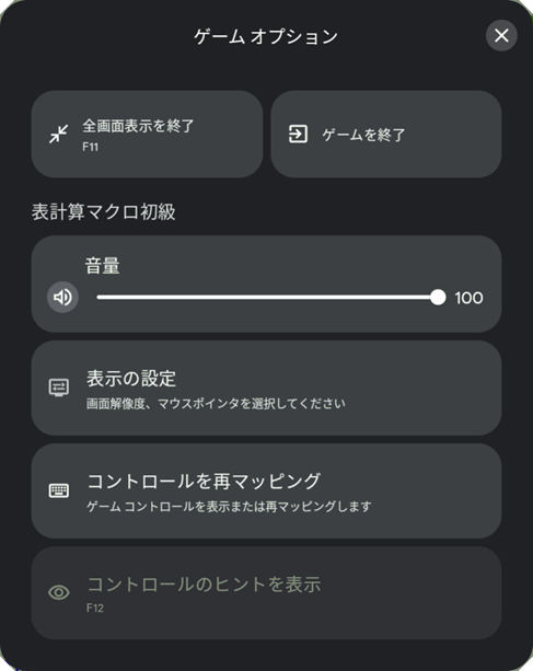 全画面表示中に [Shift]+[Tab]キーを押すとゲームオプション画面を表示します。